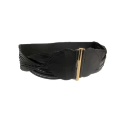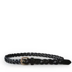 WAVERLY – Womens Black Skinny Leather Plaited Belt With Gold Buckle
