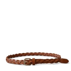 WAVERLY – Women’s Rose Gold Skinny Leather Plaited Belt With Gold Buckle