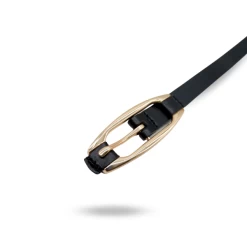 CADIA – Women’s Black Genuine Leather Skinny Belt With Oval Gold Buckle