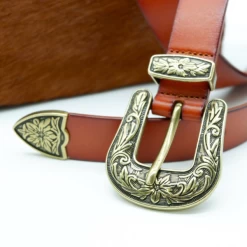INGRID – Women’s Brown Genuine Leather Skinny Belt With Oval Gold Buckle