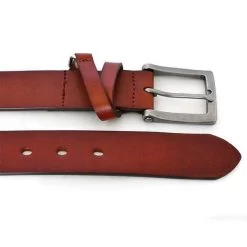 AARON – Mens Tan Genuine Leather Belt With Antique Silver Buckle
