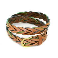 CADIA – Women’s Tan Genuine Leather Skinny Belt With Oval Gold Buckle