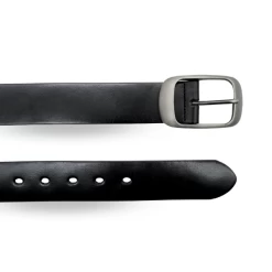 ROBIN FALLS – Women’s Black Genuine Leather Belt With Oval Silver Buckle
