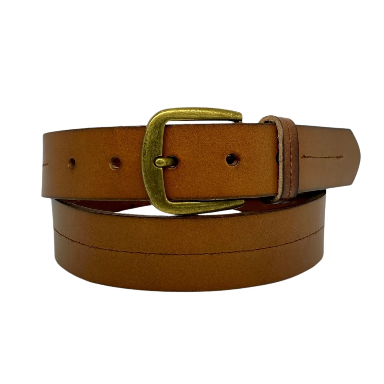 Crafted from smooth thick genuine leather, the Andrew Belt in its rich tan colour will improve with age. Designed beautifully in Australia, this stylish belt for men features a brushed gold antique buckle which makes it your fail-safe choice for streamlined city dressing.