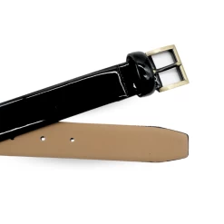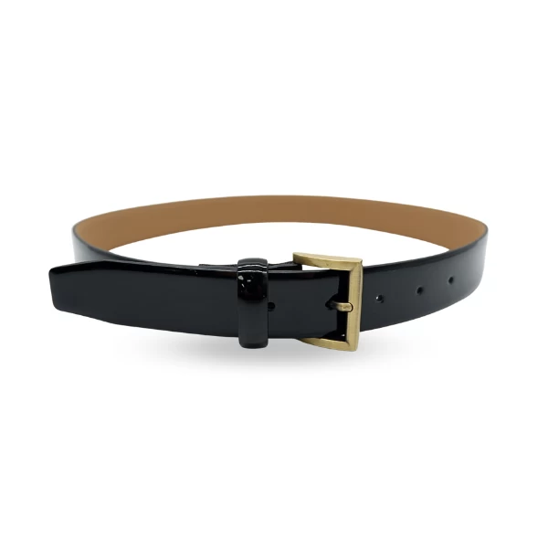 Aurora is a genuine leather patent belt with brass buckle that will add elegance to any outfit.