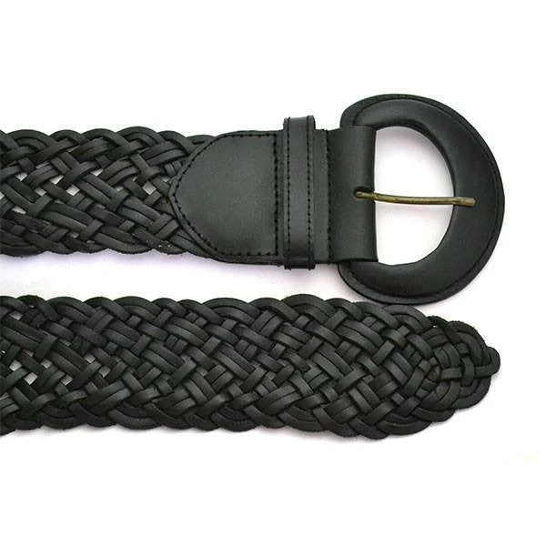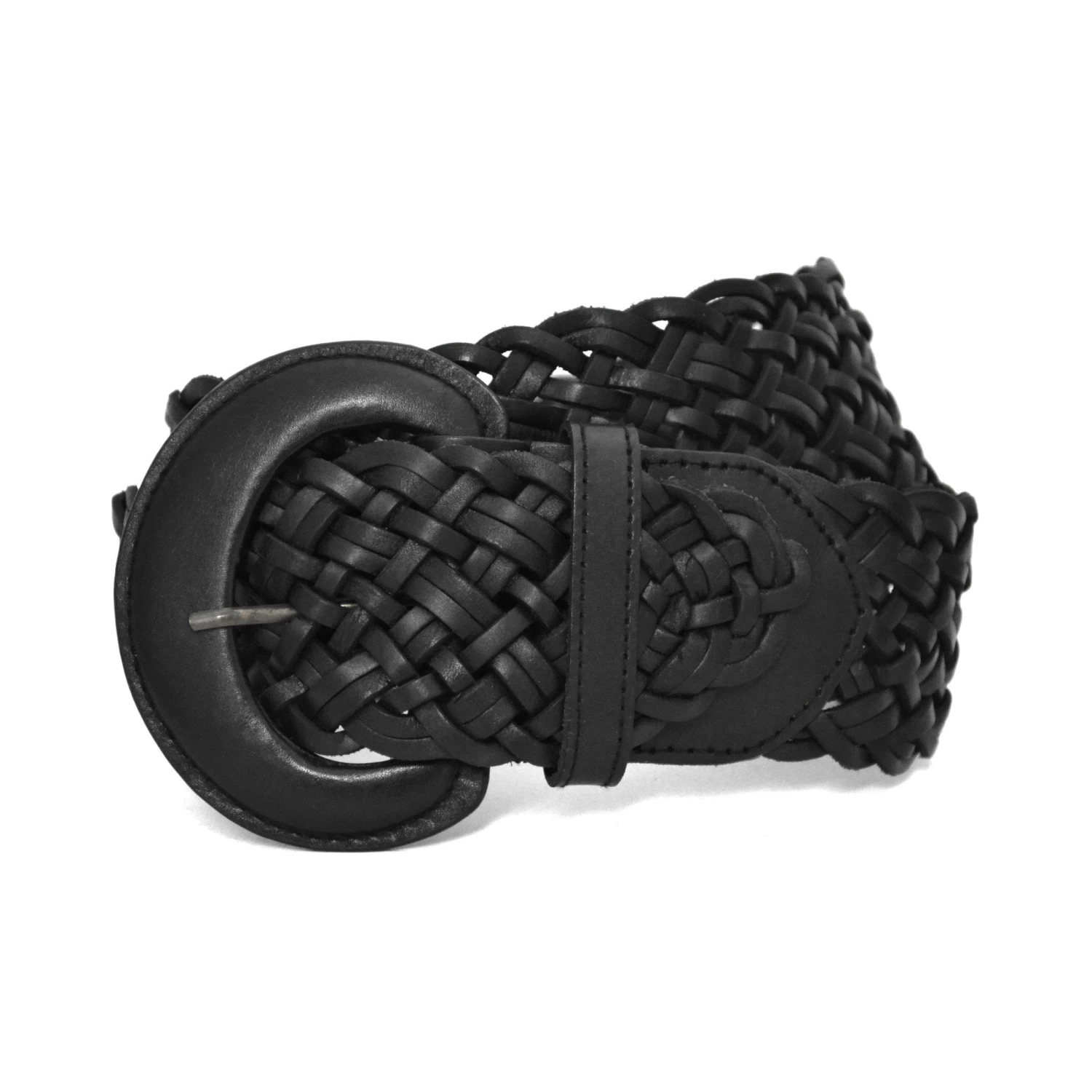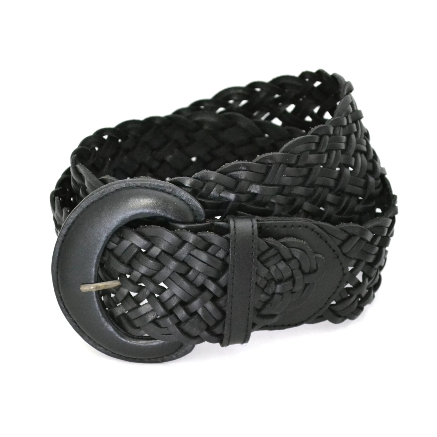 Stunning genuine leather black plaited casual belt. Featuring leather-covered buckle. Ideal belt for jeans & pants but also perfect as a waist belt with a dress.Â