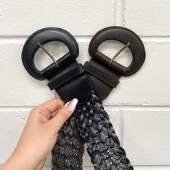 Stunning genuine leather black plaited casual belt. Featuring leather-covered buckle. Ideal belt for jeans & pants but also perfect as a waist belt with a dress.