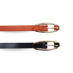 Cadia is Addison Road skinny belt that is crafted from genuine leather and features an oval golden-tone buckle.Â
