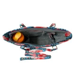 Caloundra is a perfect beach bag made of flower pattern polyester with cotton lining. The main compartment has one zipped side pocket and two little side pockets for an umbrella or water bottle.Â