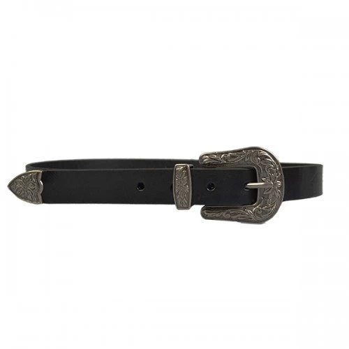 Genuine Texas hide leather from Addison Road has a boho-chic vibe. Features floral embossed metal tip and buckle. Looks great paired with your favourite dress or cutoffs.Â