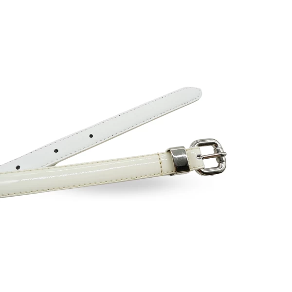 Bright, bold, and colorful best describe the ‘Carrie’ range of genuine leather belts with an ultra-high gloss White patent finish. This will add a touch of class to any outfit.