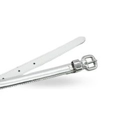 Bright, bold, and colorful best describe the ‘Carrie’ range of genuine leather belts with an ultra-high gloss silver patent finish. This will add a touch of class to any outfit.