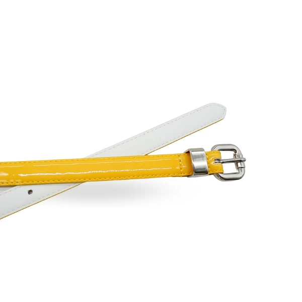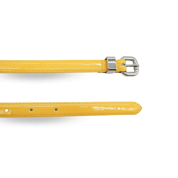 Bright, bold, and colorful best describe the ‘Carrie’ range of genuine leather belts with an ultra-high gloss Yellow patent finish. This will bring life to just about any outfit, either worn as a pant or waist belt.