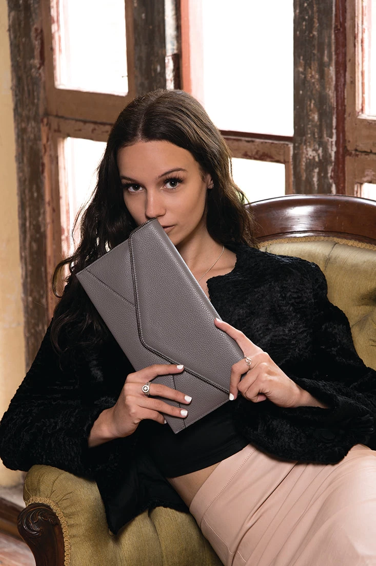 Gift Set | CENTENNIAL PARK – Womens Grey Pebbled Leather Clutch Bag & CREMORNE Leather Fold Wallet