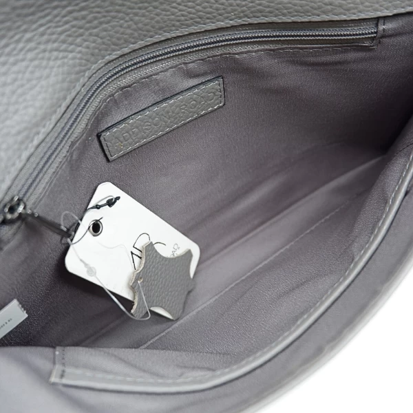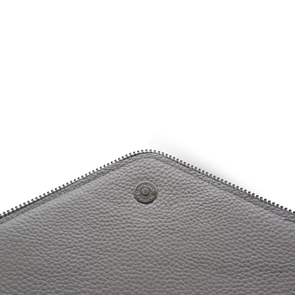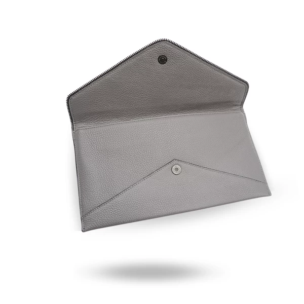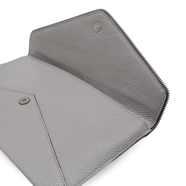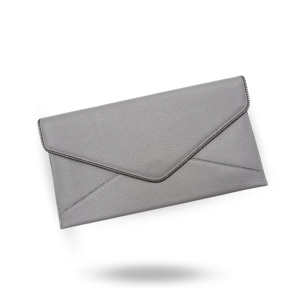Pebbled Leather Grey Clutch with Golt tone Zipper Detailing.