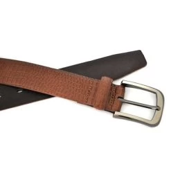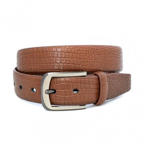 Truly stylish mens brown faux snakeskin genuine leather belt. The belt features a feathered edge with tapered end in a rich chocolate brown and lovely embossed snakeskin pattern and a beautiful two tone buckle in polished black and brushed silver finish. Perfect for work or play. Strap is 34mm wide.