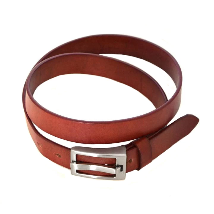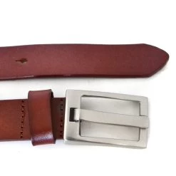 Classically styled premium genuine leather belt in Tan. Featuring a polished silver buckle with an open section which allows the strap to show through . Strap is 28mm wide.
