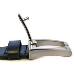 Classically styled premium genuine leather belt in black Featuring a polished silver buckle with an open section which allows the strap to show through . Strap is 28mm wide.