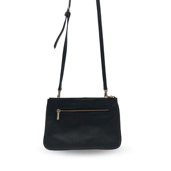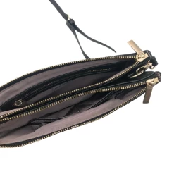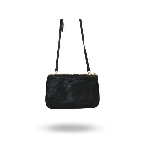 Black vegan leather crossbody bag for ladies with minimal and elegant design.Â