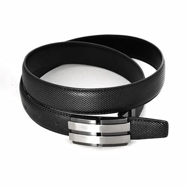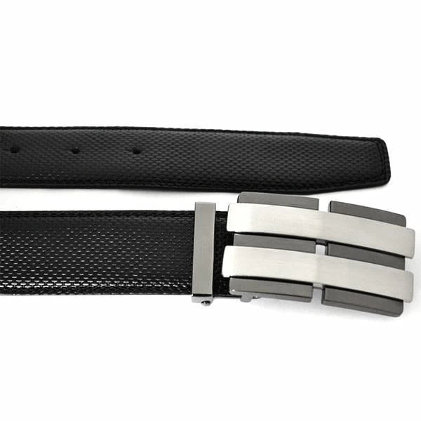 Beautifully crafted reversible genuine leather premium quality belt with an interesting textured pattern finish and stitched edge detail. Features a polished silver buckle. The strap is 34mm wide.