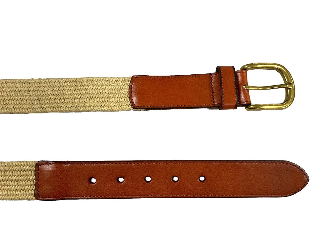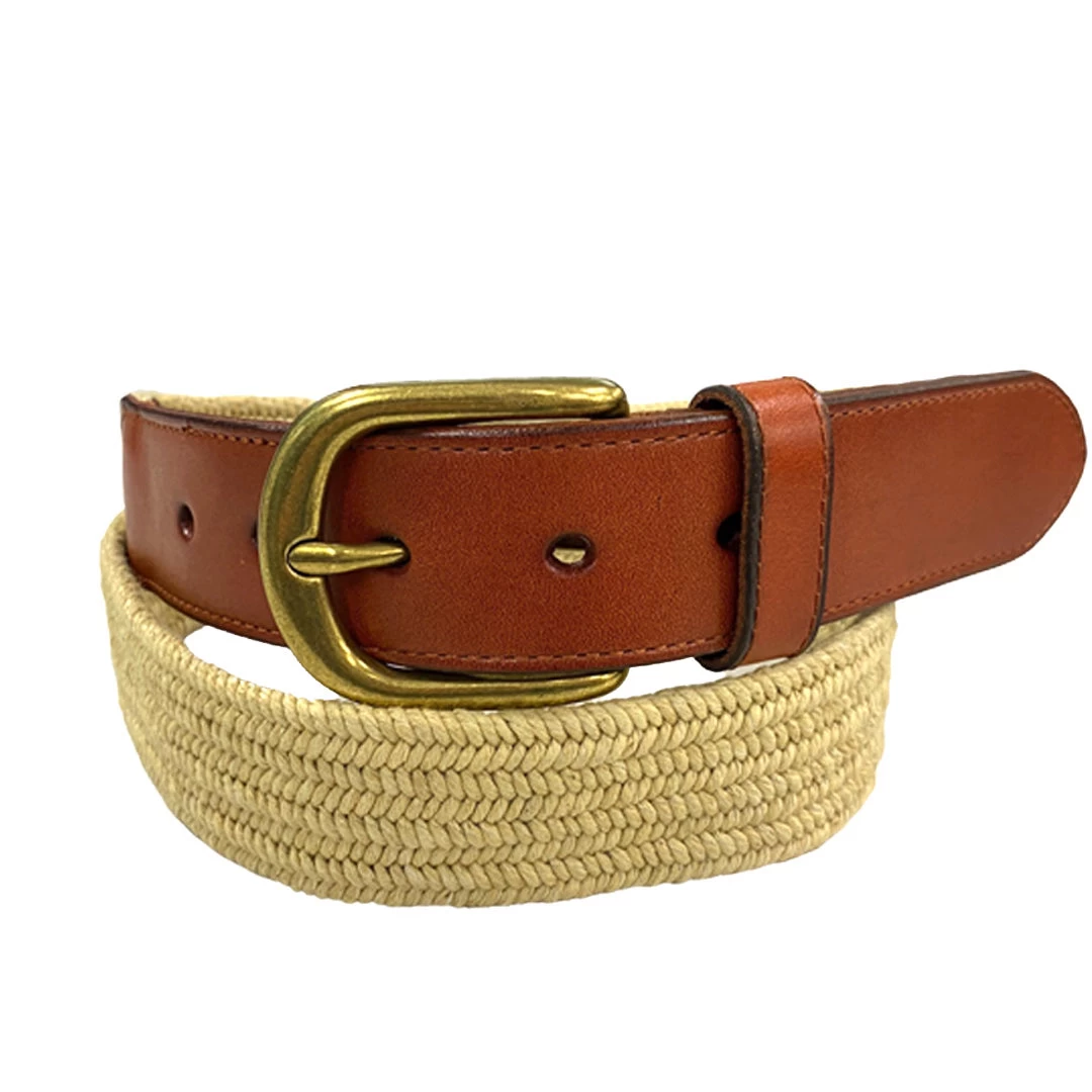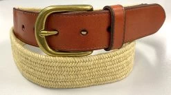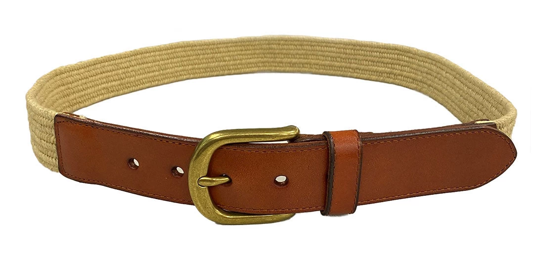 Addison Road cotton weave elastic belt with genuine leather, stitch detail & brushed gold hardware.