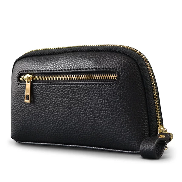 CARMICHAEL – Black Cowhide Genuine Leather Wristlet Purse