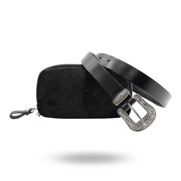 CAMDEN – Women’s Leather Black genuine Belt with Silver Floral Embossed Metal