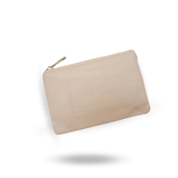 A small and convenient soft leather pouch with the exclusive Addison Road brand embossing on front, ideally as makeup pouches or casual purses.Â