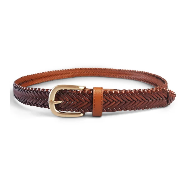 ERSKINVILLE – Ladies Tan Plaited Leather Belt with Gold Buckle