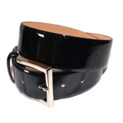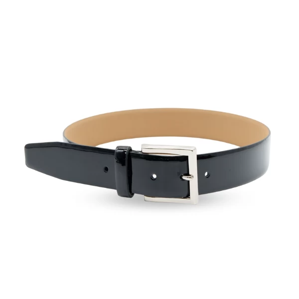 GRACE – Womens Black Patent Finish Leather Belt with Silver Buckle