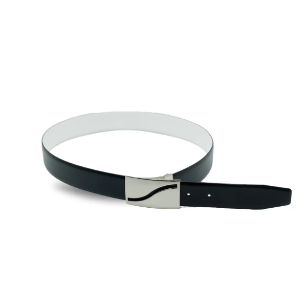 Designed specifically for the wedding market, this black and white reversible genuine leather belt features a stunning two tone highly polished silver and brushed silver buckle. The strap is jet back on one side & full white on the other with a width of 35mm. It provides versatility from formal event to both social and work attire.