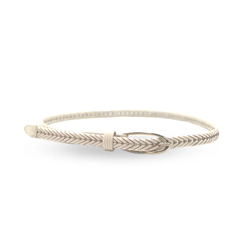 Unique herringbone plait genuine leather belt in yellow. Sensational as a pant or waist belt. The soft gold, oval shaped buckle adds further interest to this delicate style. Width of belt is 15mm. Ideal for vintage-inspired styling with dresses or skirts. Can also pair up with jeans and T-shirts for more active styles.Â
