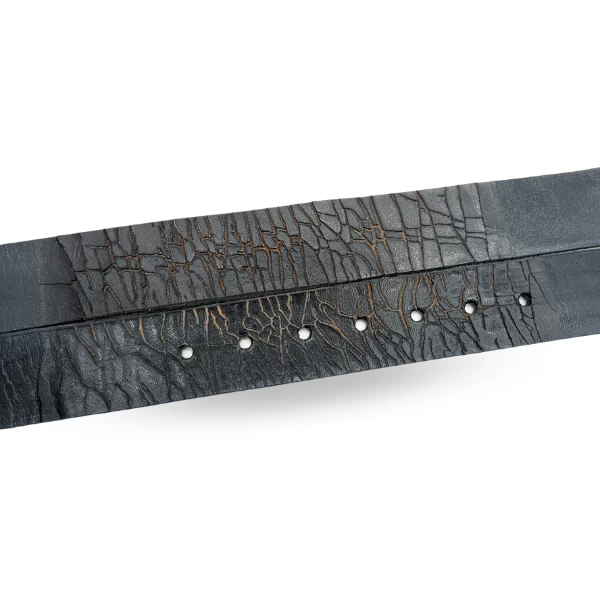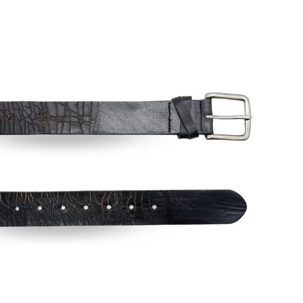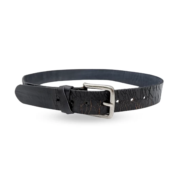 Funky distressed genuine leather belt with double keep feature. Antique silver buckle. Strap is 36mm wide.