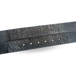 CAMDEN – Women’s Leather Black Genuine Belt With Silver Floral Embossed Metal