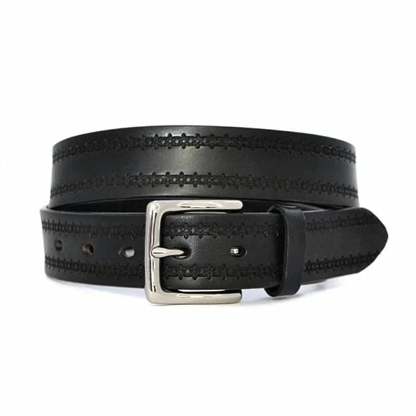 Classic genuine premium leather style with a modern twist, featuring a floral embossed detail. Smart highly polished silver buckle & the strap is 32mm