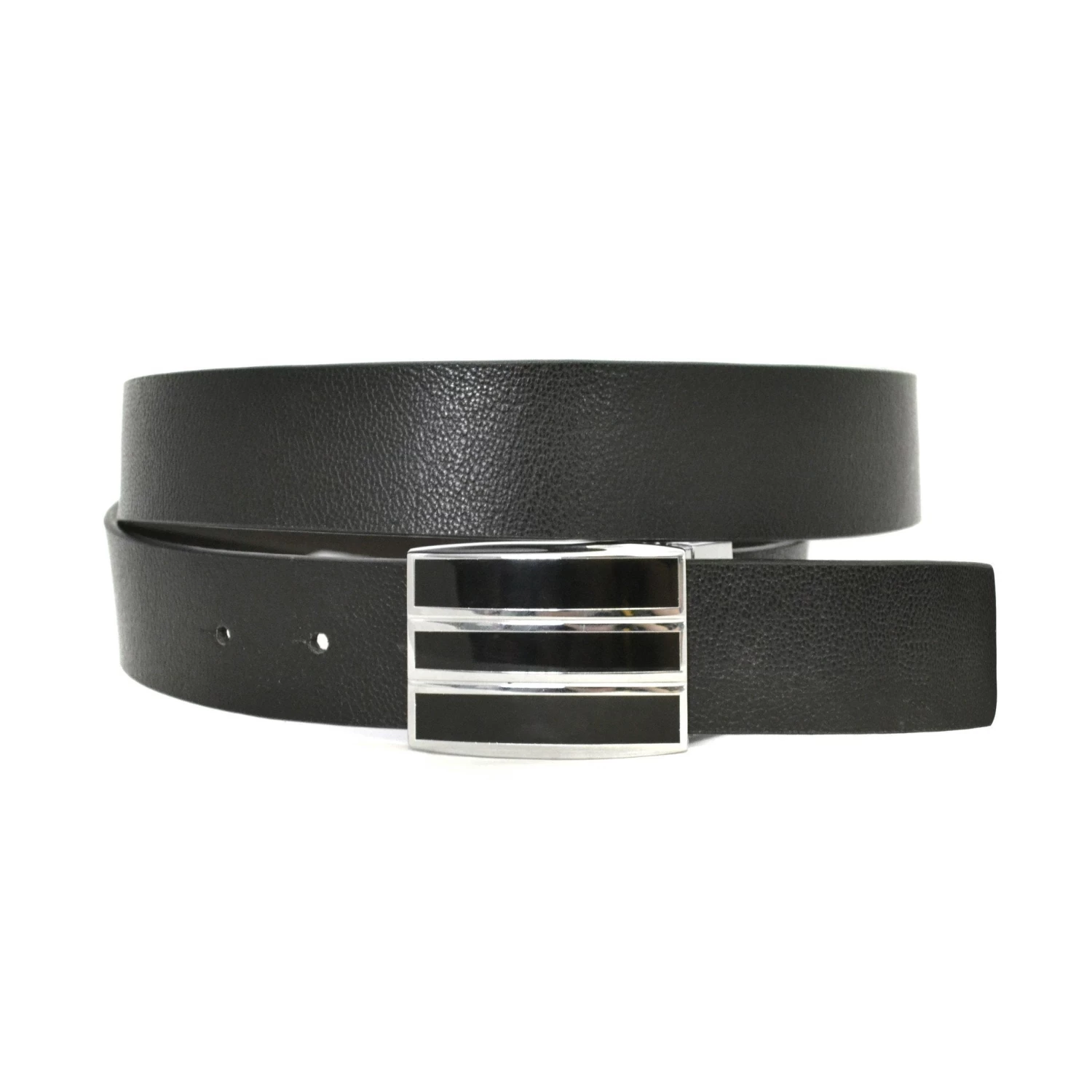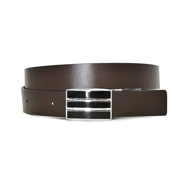 Reversible dress belts have become an essential part of the accessories line-up for sartorially switched on men, and this genuine leather black and chocolate brown belt is just the ticket. It piece allows you to choose between textured black and semi-matt chocolate depending on your look.