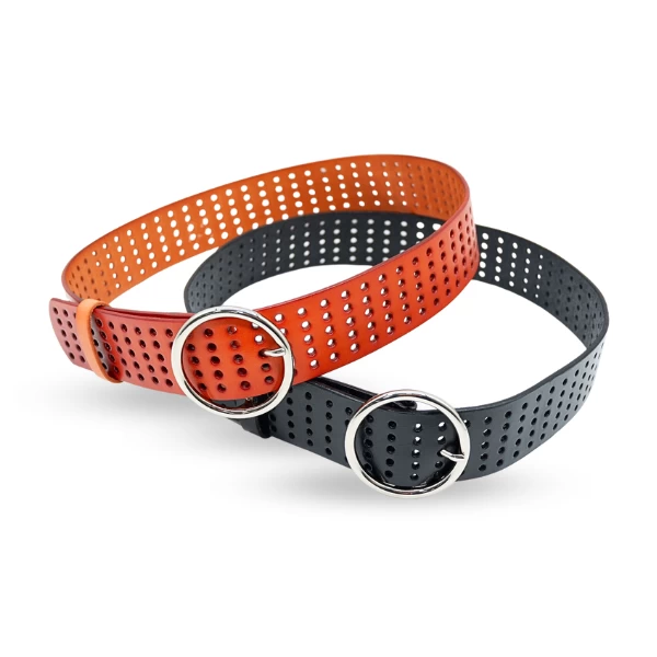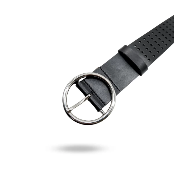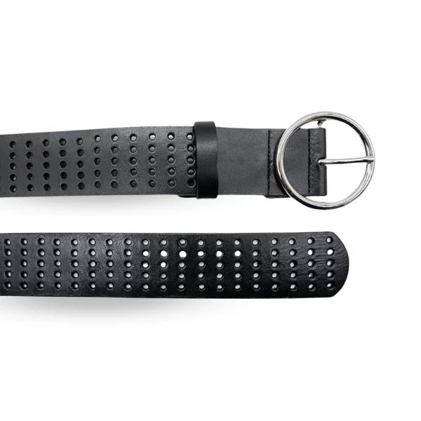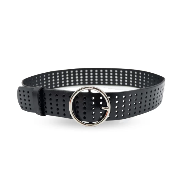Miranda is a modern belt that is crafted from a beautiful soft genuine leather. This belt also features silver-tone pin buckle. As Miranda belt have pinholes along the strap, it is perfect to adjust the size and can be used on waist or hips.Â