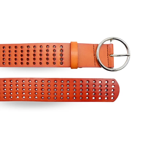 Miranda is a modern belt that is crafted from a beautiful soft genuine leather. This belt also features silver-tone pin buckle. As Miranda belt have pinholes along the strap, it is perfect to adjust the size and use belt.Â