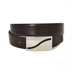 Stylish reversible genuine leather dress belt, plain chocolate brown one side & crocodile look on the other, the strap has a tapered end. Featuring a polished silver buckle with cut out detail. The clamp fixture allows you to change the buckle around. The strap is 32mm wide.