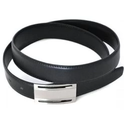 Stylish leather dress belt in black, stitched edge detail with the strap having a tapered end. Featuring a polished silver buckle. Strap is 32mm wide.