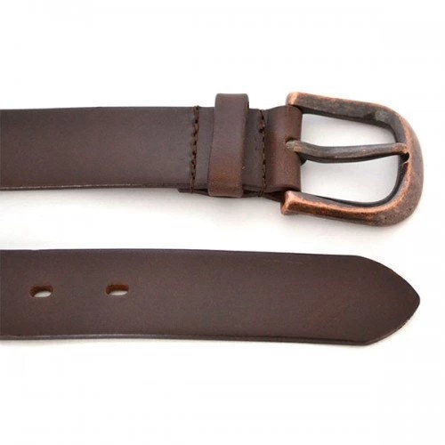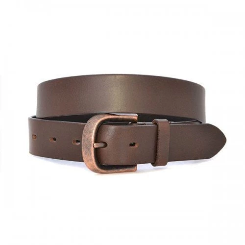 Classic genuine leather chocolate brown belt. Featuring antique copper look buckle. Strap is 36mm wide.