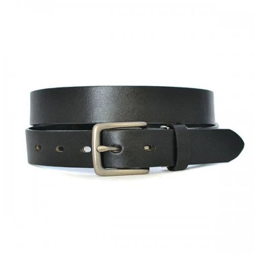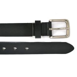 Stylish genuine leather black belt with natural grain finish. Featuring a brushed silver buckle with polished silver and leather loop. Strap is 28mm wide.