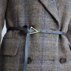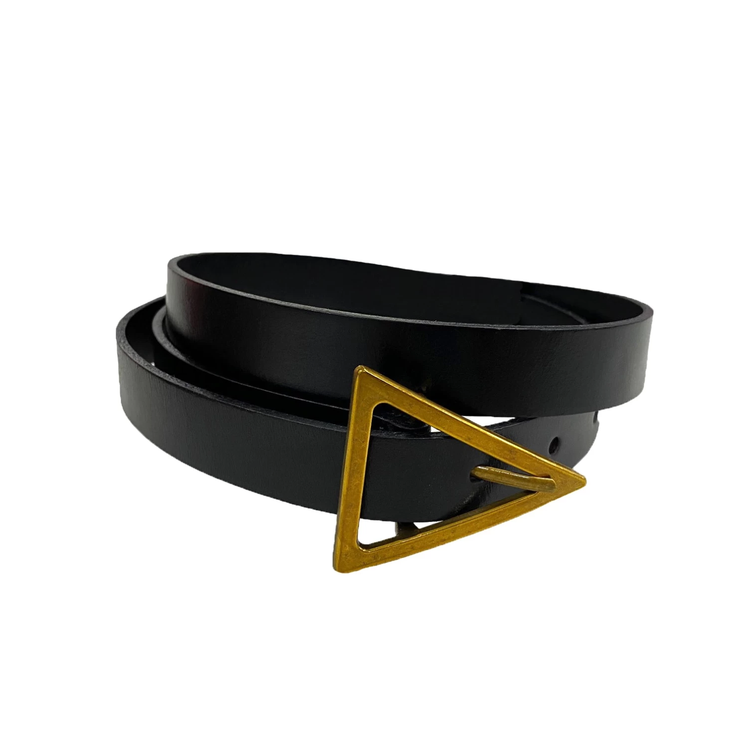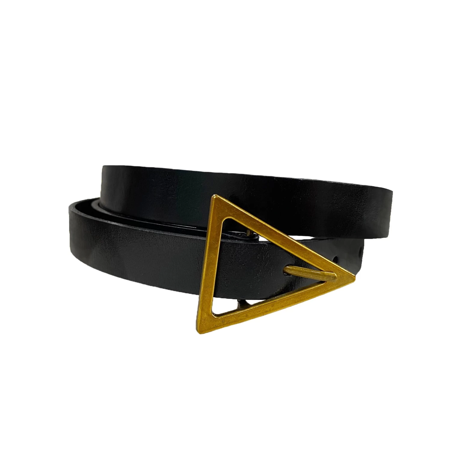Sunbury is a modern, genuine leather belt with antique gold pin buckle.Â