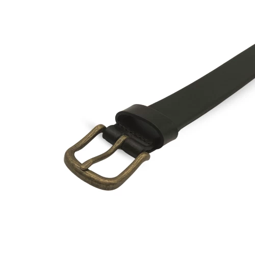 Genuine leather hard wearing black belt. Featuring an antique finished brass buckle. Strap is 28mm wide.