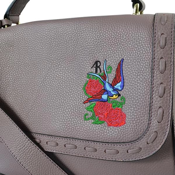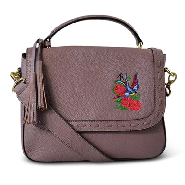 Luxe pebbled leather structured bag in lilac with signature Addison Road embroidery