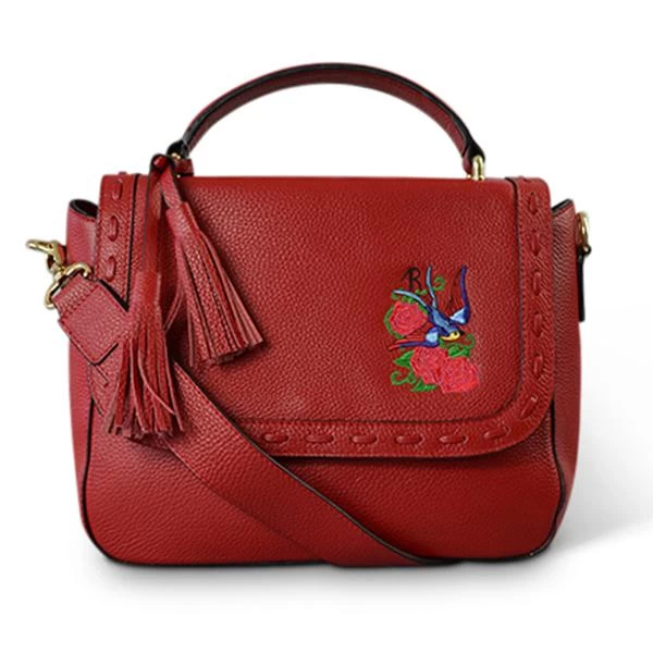 Luxe pebbled leather structured bag in red with signature Addison Road embroidery