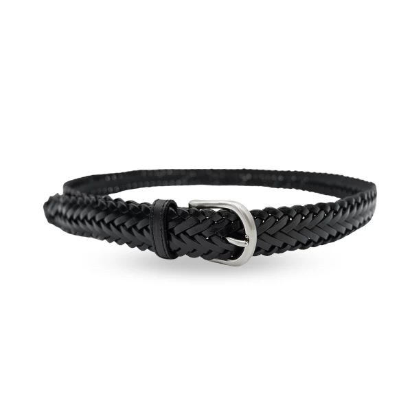 Stunning designer premium genuine leather plait detail belt in black. Featuring a polished gunmetal buckle.Â